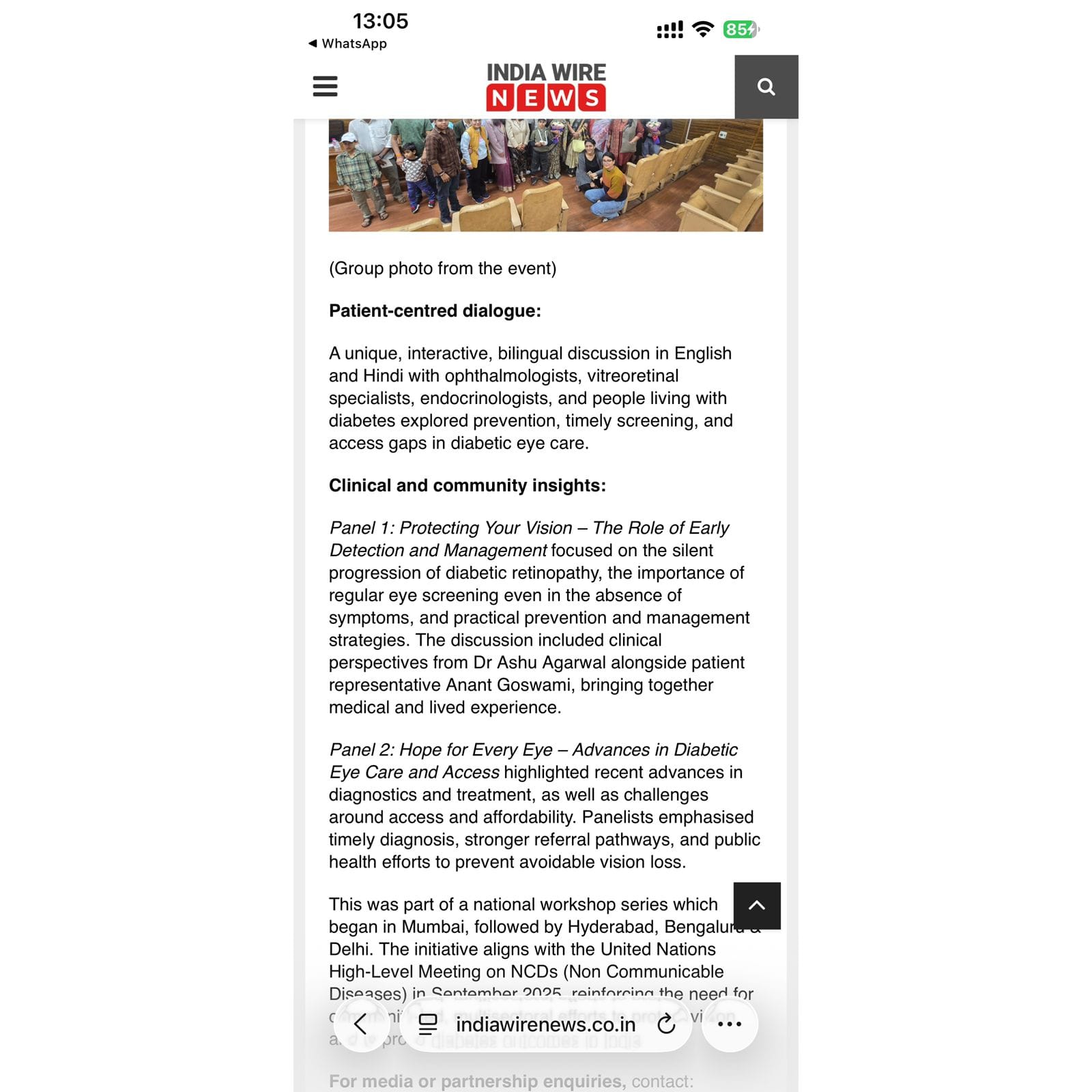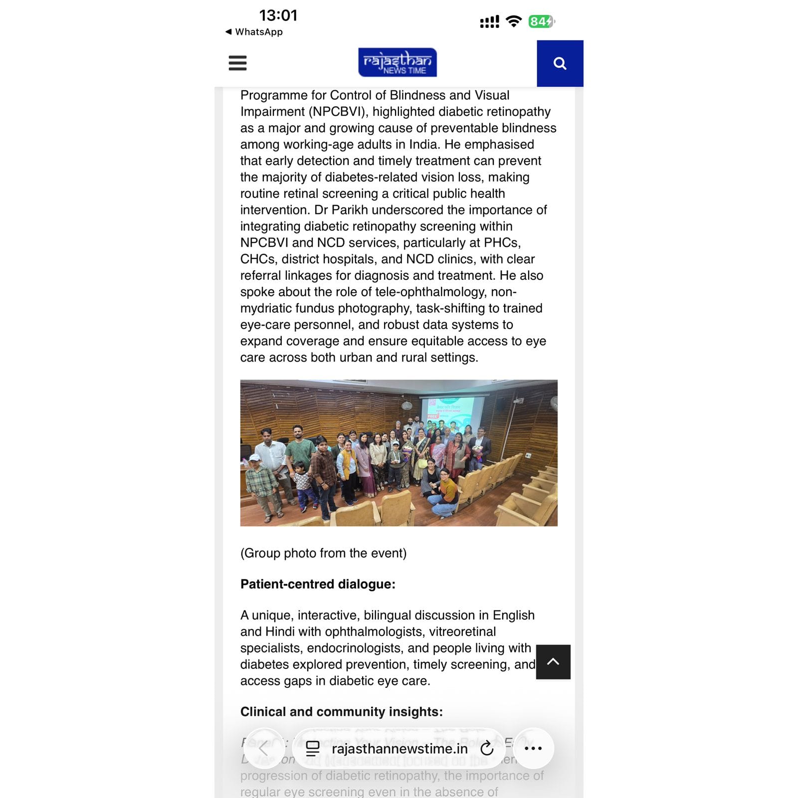 Our Retinal Health in Diabetes workshop (Jaipur, Dec 18) was featured in a few newspapers 📰 The event united people with lived experience, doctors & government stakeholders to push for early detection & access to eye care 💙