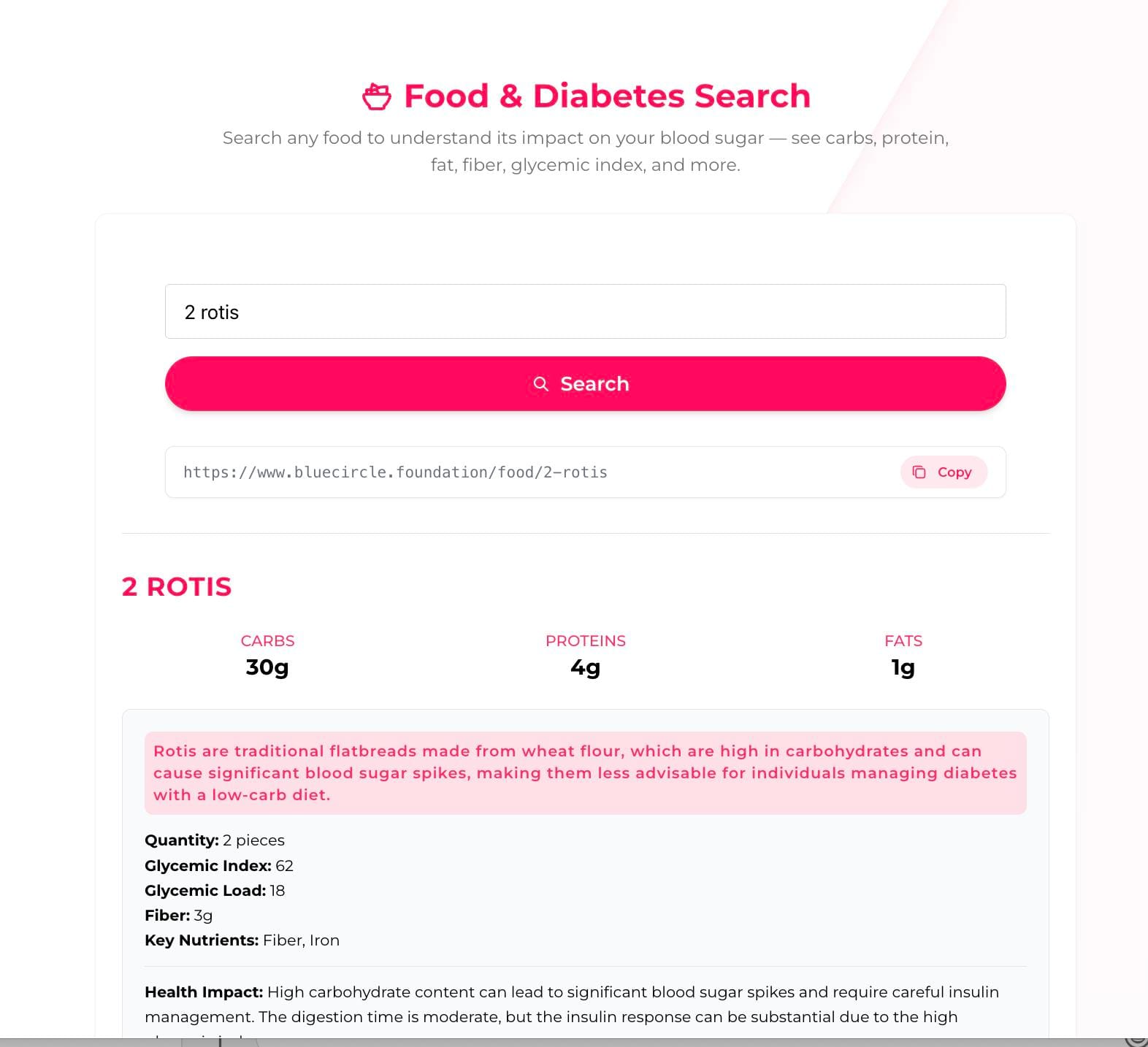 💡Introducing Food & Diabetes Search — now you can look up any food to understand its impact on your blood sugar! See carbs, protein, fat, fibre, glycemic index, and more at https://www.bluecircle.foundation/food